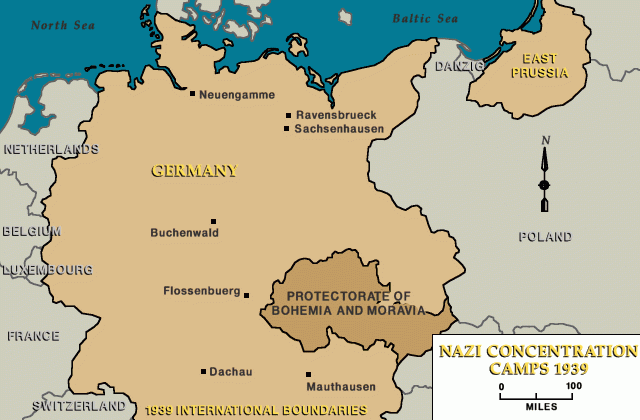 Construction du camp de concentration. La première caserne terminée. Les chaudrons en ébullition au premier plan provenaient des camps de concentration de Bad Sulza et de Sachsenburg.